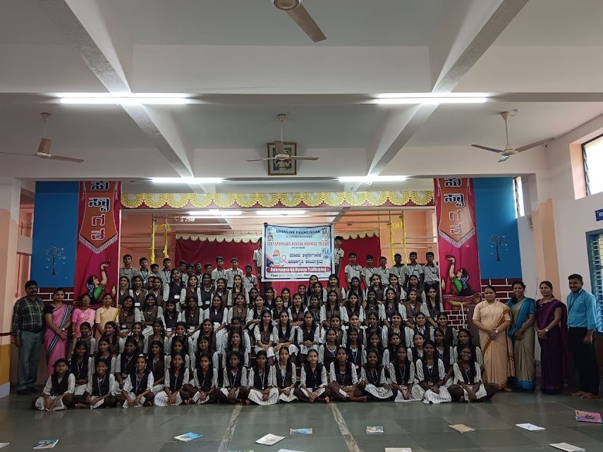 An Awareness session on Human Trafficking was conducted at Holy Family High School, Bajpe by Sr Ilene Joy Dsouza, the social Co-ordinator of Jeevandhara Social Service Trust, Kulshekar.